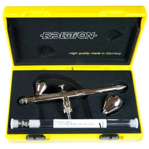 Регулировка подачи краски: Противопоставляясь обычным Evolution, этот аэрограф также обладает регулировкой подачи краски. Это позволяет вам точно контролировать количество распыляемой краски, что важно для создания различных эффектов и детализированных работ.