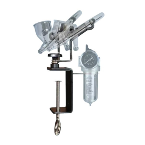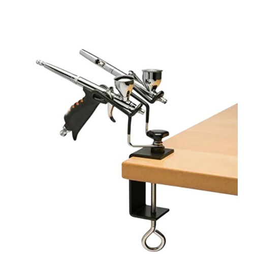 Подставка-держатель для аэрографа Deluxe Airbrush Holder Iwata AH 400 — универсальное и надежное решение для профессиональной работы. Устойчивая конструкция с удобной струбциной позволяет надежно зафиксировать держатель на краю стола, освобождая руки и обеспечивая комфорт в течение длительных сессий аэрографии.