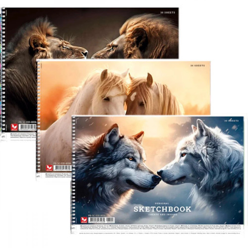 Альбом для рисования Sketchbook Животные А4/30 листов, 120 г/м², на пружине (микс)