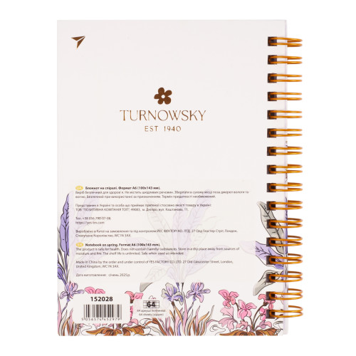 Блокнот на спирали в клетку А6 64 листа 7БЦ YES Turnowsky