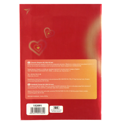 Торговая марка YES — это яркие дизайны, премиум-качество бумаги и отделки, а также забота о комфорте в учебе и работе. Блокнот А6 становится надежным помощником: компактный, прочный, с приятной бумагой и удобной клеткой — всё для аккуратных записей и продуктивности. Софт-тач и УФ-лак добавляют блокноту тактильной приятности и визуальной премиальности, а интегральный переплет гарантирует долговечность даже при ежедневном использовании.