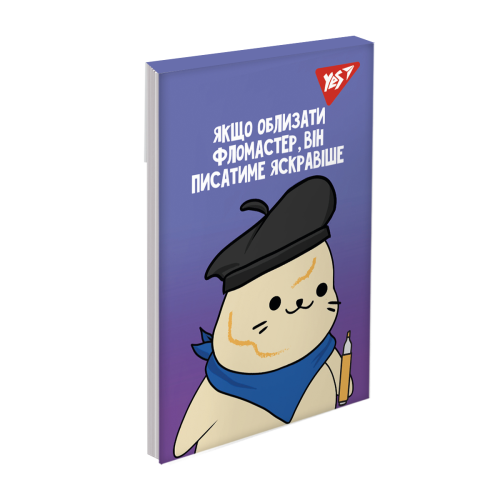 Торговая марка YES — это креативные дизайны, качественная бумага и забота о том, чтобы даже маленький блокнот приносил радость и мотивацию. Блокнот А7 становится верным спутником в повседневной жизни: компактный, стильный, с мотивирующими фразами и удобной мини-клеткой — всё для того, чтобы ваши идеи, цели и рисунки всегда были с вами.