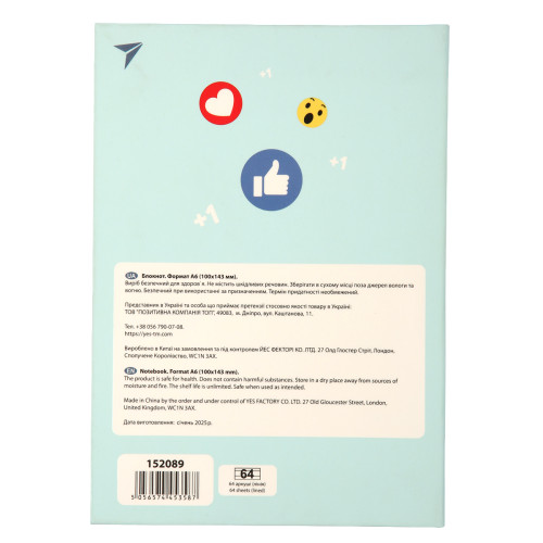 Торговая марка YES — это яркие дизайны, премиум-качество бумаги и отделки, а также забота о комфорте в учебе и работе. Блокнот А6 становится надежным помощником: компактный, прочный, с приятной бумагой и удобной линией — всё для аккуратных записей и продуктивности. Софт-тач и УФ-лак добавляют блокноту тактильной приятности и визуальной премиальности, а интегральный переплет гарантирует долговечность.