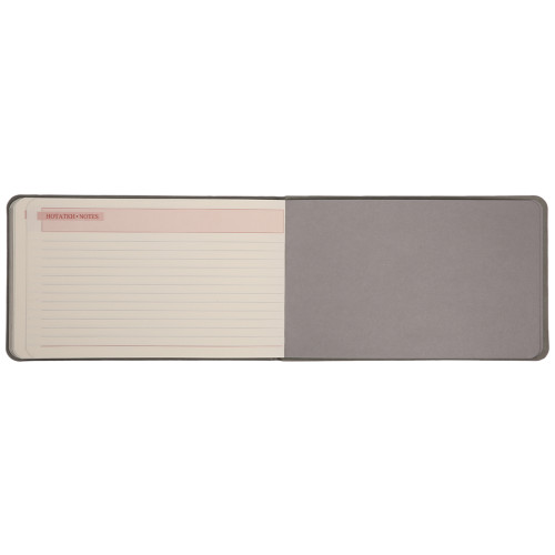 Бумажный блок состоит из 128 кремовых страниц плотностью 80 г/м², которые подходят для письма без просвечивания. Закругленные углы продлевают срок службы страниц, а цветной срез придает дополнительный дизайнерский акцент. Дополнительно предусмотрены календари, справочный блок и страницы для заметок.