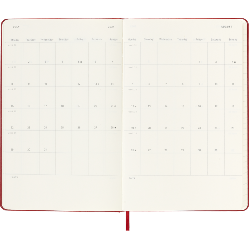 Организуйте свои планы и цели на полтора года вперёд с еженедельником Moleskine 2023–2024. Этот планировщик охватывает период с июля 2023 по декабрь 2024 года, отображая весь тиждень на одном развороте, чтобы вы могли удобно фиксировать встречи, дела, заметки и вдохновения. Со временем он станет личной хроникой достижений и впечатлений.