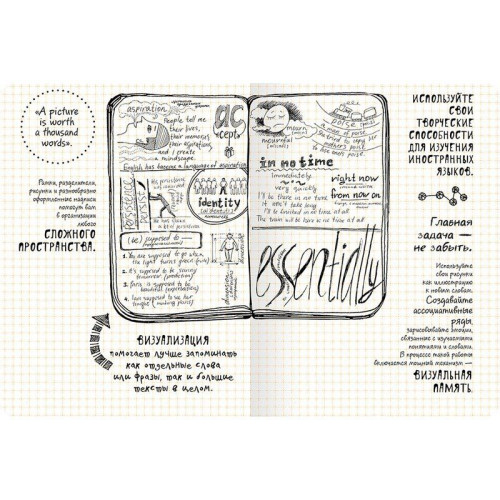 Книга «Doodlebook. 10 простых шагов к искусству визуализации» — это практическое руководство по технике дудлинга, которая помогает упорядочивать мысли, структурировать информацию и развивать креативность без необходимости в художественных навыках. Дудлинг — это спонтанные рисунки, которые активируют оба полушария мозга, улучшают концентрацию, память и продуктивность мышления.
