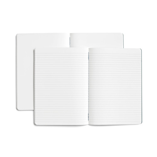 Размер: A5 (148 × 210 мм). В набор входят: 1 блокнот в линейку (6 мм) и 1 чистый блокнот. Количество страниц: 52 перфорированные в каждом (всего 104 страницы). Толщина бумаги: 120 микрон (эквивалент 144 г/м²). Печать: соевая краска. Цвет обложки: Голубой ледник. Производство: каменный бумага, полностью перерабатываемая.