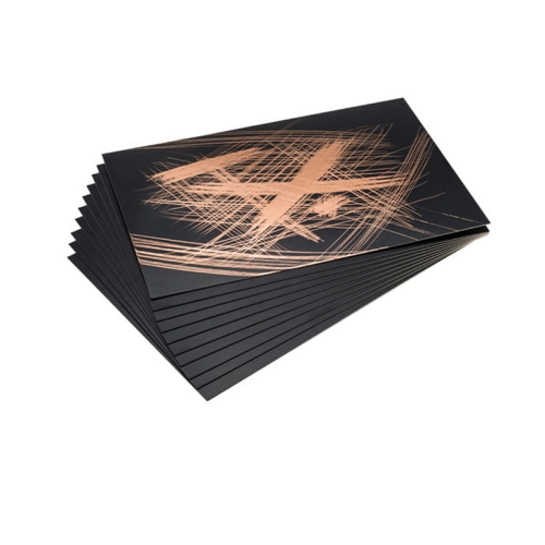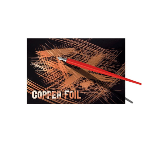 Фольга для гравюры ESSDEE — необычный и увлекательный материал для создания картин-гравюр с эффектом меди. Поверхность покрыта чёрным слоем, который аккуратно снимается резцом или гравировальным инструментом, открывая под ним тёплый медный блеск.