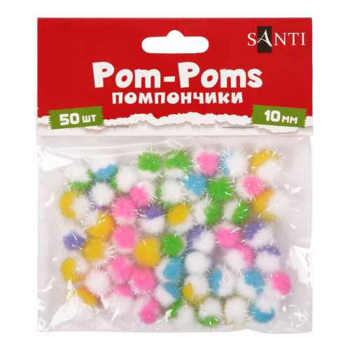 Теги: Помпоны с люрексом двуцветные микс 5 цветов d 10мм 50 шт/уп, SANTI