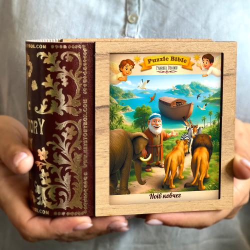 Набор пазлов «Ноев ковчег» (Puzzle Bible) — сюжетный деревянный пазл из серии KeyStory / Puzzle Bible. Иллюстрация изображает Ноя, который собирает животных для спасения в ковчеге, и помогает детям познакомиться с одной из самых известных историй Библии. Игра развивает моторику, внимание и логическое мышление, а также подталкивает к обсуждению тем веры, послушания и заботы о ближних.