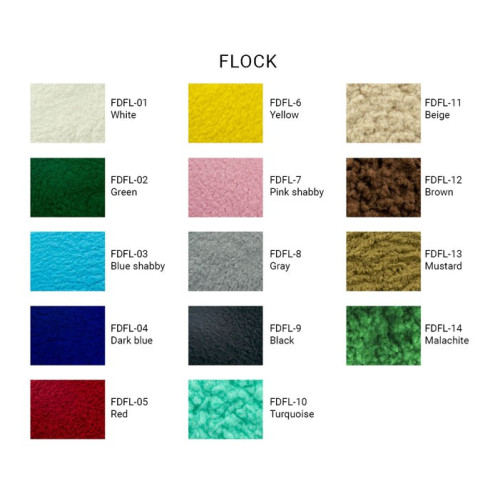 Пудра «Флок» имеет очень нежную мелкую текстуру. Применяется для создания дополнительного объема и бархатного эффекта. Пудра крепится на обычный клей, который при высыхании становится прозрачным, так же может крепиться на двухсторонний скотч и на обычную акриловую краску. Если необходим насыщенный цвет лучше сначала нанести акриловую краску в тон пудры и сразу засыпать это место флоком. Слегка примять флок пальцами или сухой кистью, лишнее стряхнуть на бумагу. Расходуется очень экономно.