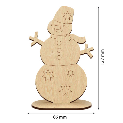 Заготовка «Снеговик» №556 на подставке — весёлая и уютная декоративная фигурка из МДФ, выполненная методом точной лазерной резки. Устойчивая подставка позволяет снеговику уверенно стоять на столе, полке, камине, подоконнике или в любой композиции. Это делает её идеальной основой для создания новогодних и зимних украшений, подарков и праздничного декора.