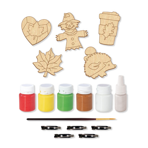 «Осенний вайб» — набор для творчества от Fabrika Decoru, который наполнит ваши выходные уютом и вдохновением! Создайте пять деревянных значков-пинов на осеннюю тематику — пугало, грибочек, чашку кофе, сердечко и кленовый лист. Даже без художественного опыта вы сможете сделать стильные аксессуары своими руками.
