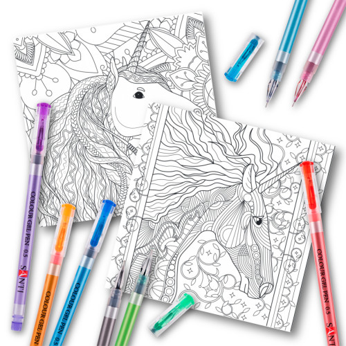 Теги: Раскраска антистресс c гелевыми ручками Мифические единороги, SANTI