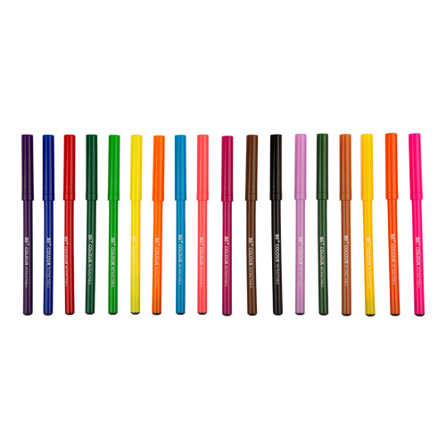 Корпус фломастеров изготовлен из прочного пластика, а инновационный амортизирующий механизм предотвращает вдавливание наконечника внутрь корпуса, значительно продлевая срок службы. Пишущий узел равномерно подаёт чернила и имеет оптимальную жёсткость, что обеспечивает плавное и аккуратное рисование. Чернила на водной основе безопасны и легко смываются холодной водой.