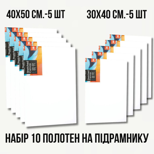 Набор холстов на подрамнике 30х40, 40x50 см, по 5 шт, хлопок мелкое зерно, акриловый грунт 280г/м2 Arteo