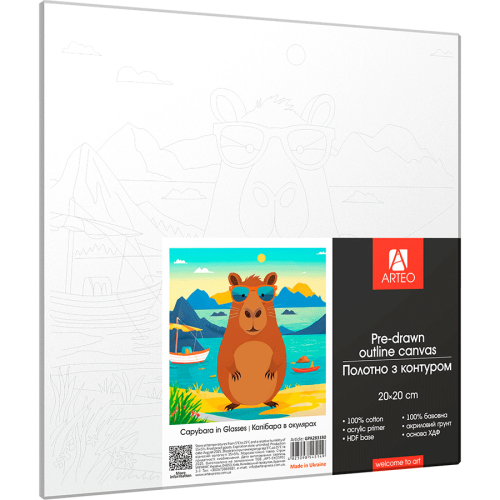 Теги: Холст хлопок на ХДФ с контуром Капибара в очках 20x20, акриловый грунт, Arteo