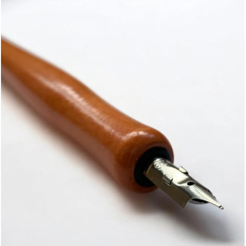 Универсальный металлический фланец надёжно фиксирует любые остроконечные перья (G-nib, Nikko, Tachikawa, Hunt и др.) — вставляются и вынимаются легко, но держатся крепко, без люфта. Форма держателя сбалансирована так, что рука практически не устаёт.