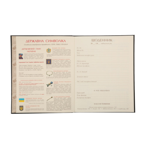 В дневнике также содержится справочная информация о государственной символике Украины и Президенте Украины — полезный набор сведений для школьника.