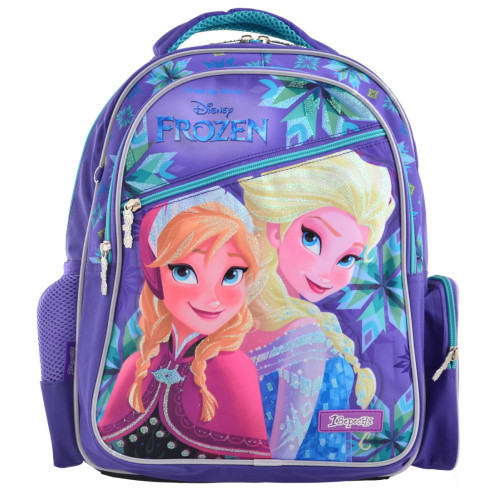 Детский школьный рюкзак Frozen на два отделения. На передней панели - два кармана на молнии, боковые карманы для воды. Внутри — дополнительные разделители и эластичный фиксатор. Плотная спинка с вентилируемой сеткой «Air Mesh» и комфортные лямки. Для безопасности ребенка в темное время суток — наличие светоотражающих элементов. Основной материал: полиэстер водоотталкивающий.