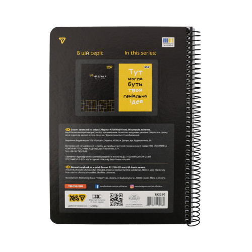 Тетрадь для записей Yes А5 80 листов клетка на спирали Ідея