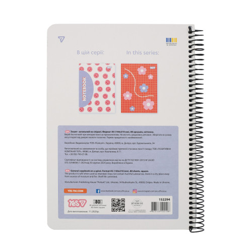 Тетрадь для записей Yes А5 80 листов клетка на спирали Smiley and Flowers