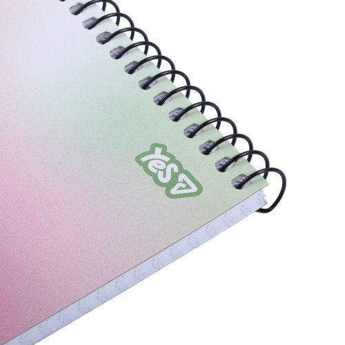 Яркий современный дизайн подчёркивает индивидуальность владельца, а прочная обложка из белого крафт-картона надежно защищает страницы. Белая офсетная бумага со скругленными уголками делает письмо приятным: листы не просвечивают и не рвутся. Металлическая спираль с узким шагом позволяет раскрывать тетрадь на 180°, обеспечивая удобство при записи на любой странице.