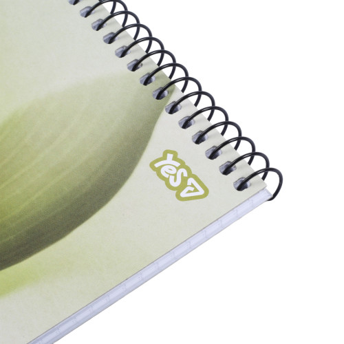 Яркий современный дизайн подчёркивает индивидуальность владельца, а прочная обложка из белого крафт-картона надежно защищает страницы. Белая офсетная бумага со скругленными уголками делает письмо приятным: листы не просвечивают и не рвутся. Металлическая спираль с узким шагом позволяет раскрывать тетрадь на 180°, обеспечивая удобство при записи на любой странице.