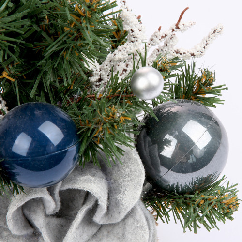 Искусственная маленькая ель с нижними аксессуарами – отличный декор для помещения в период новогодних праздников, который можно использовать, украшая множество поверхностей в доме, офисе, торговых центрах. Поставьте такую ель на столе, полке, тумбочке, на прилавке магазина, у прикассовой зоны – и праздничное настроение окружающим будет гарантировано. Компактность и качественное исполнение этого украшения – это и есть ее главные преимущества. Материал: ПВХ плёнка шириной 6 см; проволока; деревянный пень, обтянутый мешковиной. Высота: 25 см. Диаметр нижнего ряда: 25 см. Габариты: 0,25м.