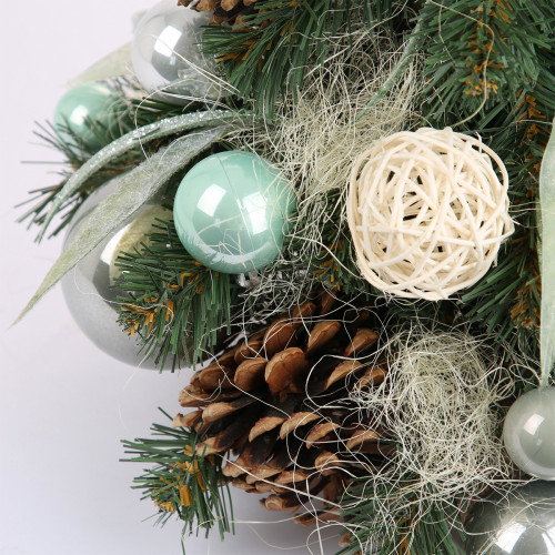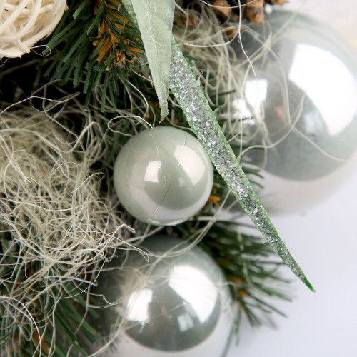Искусственная маленькая ель с нежными аксессуарами – отличный декор для помещения в период новогодних праздников, который можно использовать, украшая множество поверхностей в доме, офисе, в торговых центрах. Поставьте такую ель на столе, полке, тумбочке, на прилавке магазина, в прикассовой зоне – и праздничное настроение окружающим будет гарантировано. Компактность и качественное исполнение данного украшения – это и есть его главные преимущества. Материал: ПВХ пленка шириной 6 см; проволока; деревянный пенек, обтянутый мешковиной. Высота: 45 см. Диаметр нижнего ряда: 32 см. Габариты: 0,45м.