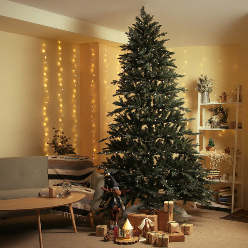 Искусственная ель с литыми ветками максимально подобна натуральному дереву. Все используемые материалы экологически чистые, имеют противопожарные свойства. Большим плюсом искусственной елки является её долговечность, а сборка конструкции не отнимет много времени. Красивое и пышное новогоднее дерево будет ежегодно наполнять дом радостью и благополучием в рождественский период. Материал: ПВХ пленка шириной 8,5 см; литые ветки; металл; проволока. Высота: 270 см. Диаметр нижнего ряда: 170 см. Ствол ели состоит из трех частей + верхушка. Подставка ели — это металлическая крестовина с болтами, закрепляющими ствол. Габариты: 2,70 м.