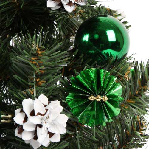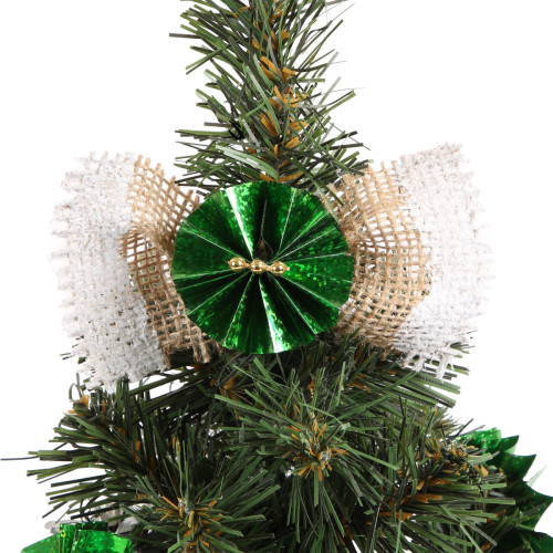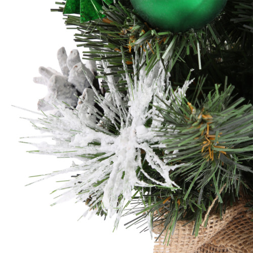 Искусственная маленькая ель с красивыми яркими аксессуарами – отличный декор для помещения в период новогодних праздников, который можно использовать, украшая множество поверхностей в доме, офисе, в торговых центрах. Поставьте такую ель на столе, полке, тумбочке, на прилавке магазина, в прикассовой зоне – и праздничное настроение окружающим будет гарантировано. Компактность и качественное исполнение данного украшения – это и есть его главные преимущества. Материал: ПВХ пленка шириной 6 см; проволока; деревянный пенек, обтянутый мешковиной. Высота: 45 см. Диаметр нижнего ряда: 32 см. Габариты: 0,45м.