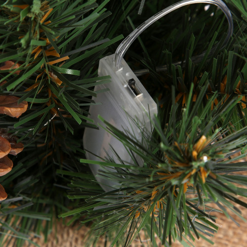 Искусственная хвоя изготовлена из качественной ПВХ-плёнки с плотной структурой, что придаёт ёлке естественный и пушистый вид. Деревянное основание, обёрнутое в мешковину, делает конструкцию устойчивой и добавляет декоративного шарма. Встроенная LED-гирлянда излучает тёплый мягкий свет, создавая уютную атмосферу зимнего праздника.