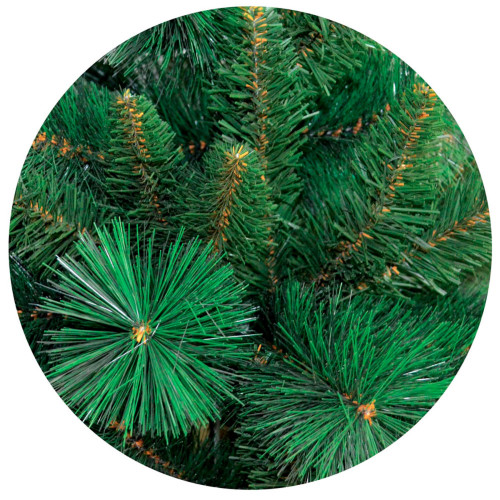 Хвоя изготовлена из ПВХ-плёнки шириной 6 см, что придаёт ветвям аккуратный и естественный вид. Ствол состоит из двух частей и съёмной верхушки, выполнен из металла и армирован проволокой для прочности. Устойчивая металлическая крестовина с болтами обеспечивает надёжную фиксацию дерева. Простая сборка позволяет быстро установить сосну и наслаждаться праздничной атмосферой.
