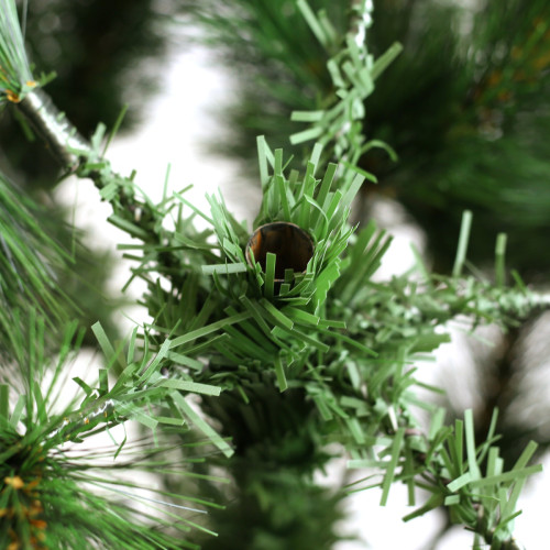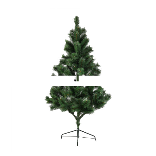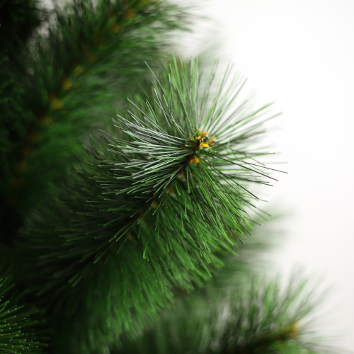 Искусственная сосна подобна натуральному дереву, растущему в живой природе. Все используемые материалы экологически чистые, имеют противопожарные свойства. Большим плюсом искусственной сосны является её долговечность, а сборка конструкции не отнимет много времени. Красивое и пышное новогоднее дерево будет ежегодно наполнять дом радостью и благополучием в рождественский период. Материал: ПВХ пленка шириной 10 см; металл; проволока. Высота: 150 см. Диаметр нижнего ряда: 116 см. Ствол состоит из двух частей. Подставка сосны — это металлическая крестовина с болтами, закрепляющими ствол. Габариты: 1,50 м.