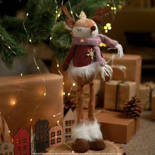 Новогодняя мягкая игрушка Yes! Fun "Олень с короной", 45 см, LED привнесет праздничное волшебство в ваш дом, наполняя его сказочной атмосферой. Это не просто игрушка - это своего рода проводник в мир новогодних праздников. Изготовленный из высококачественных материалов, олень приятен на ощупь и мягок, создавая ощущение уюта и тепла. Наша игрушка - не просто предмет декора, она представляет собой инвестицию в незабываемые моменты счастья и радости. Украшение любого уголка вашего дома, прекрасно дополнит новогоднюю елку и придаст неповторимую атмосферу вашему празднику. Придайте волшебства любому моменту вашей жизни вместе с новогодней игрушкой Yes! Fun "Олень с короной", 45 см, LED