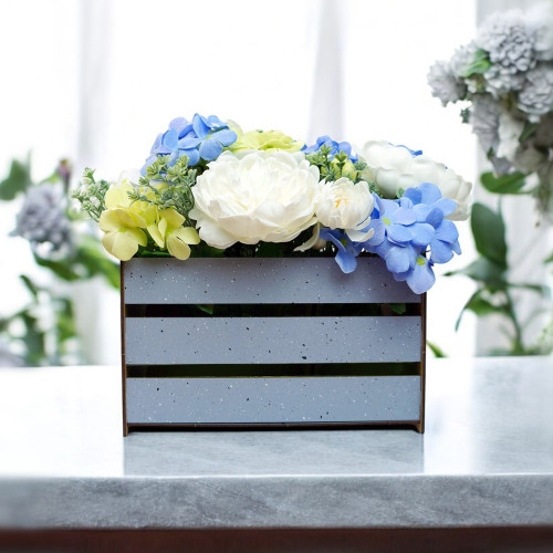 - Элегантная деревянная корзина серо-голубого цвета, идеально подчёркивающая морскую тематику