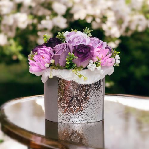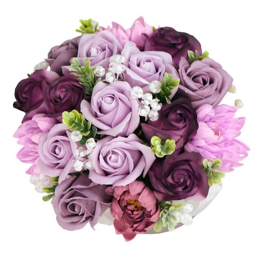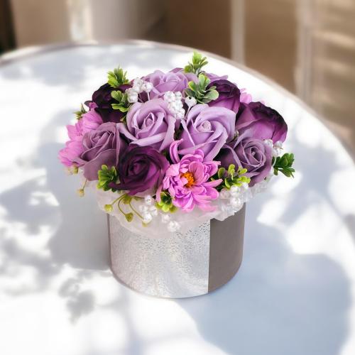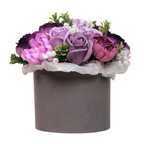 Теги: Композиция Люкс Аметист с цветами из мыльной пенки в шляпной коробке, 200 x 200 x 190 мм