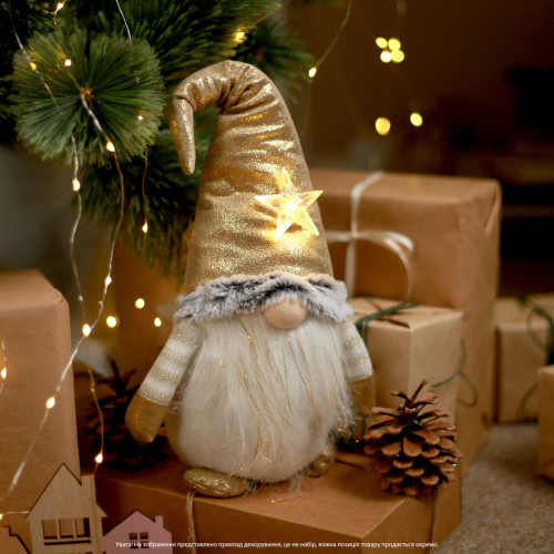 Теги: Новогодняя мягкая игрушка Novogodko Гном в золотом колпаке, 44 см, LED звезда