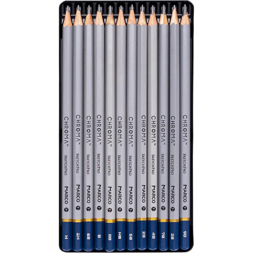 Теги: Набор графитных карандашей Marco Chroma 12 штук 2Н-9B в металлическом пенале