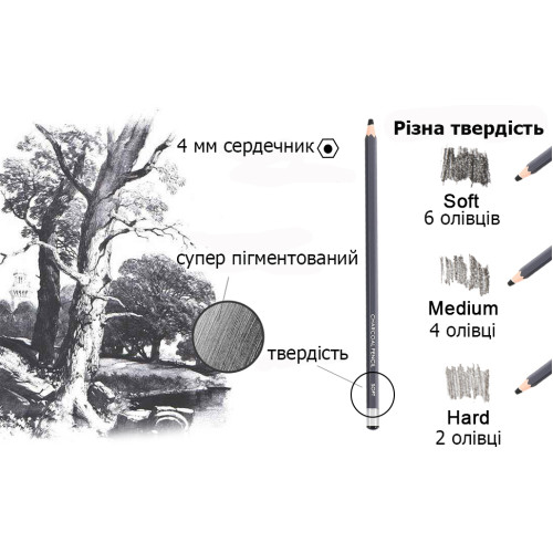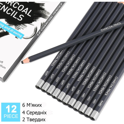 Купить набор угольных карандашей WORISON (12 штук разной твёрдости) на Арткопилка — оригинальная продукция WORISON по лучшим ценам с доставкой в Киев, Львов, Одессу, Днепр, Харьков и любой город Украины.