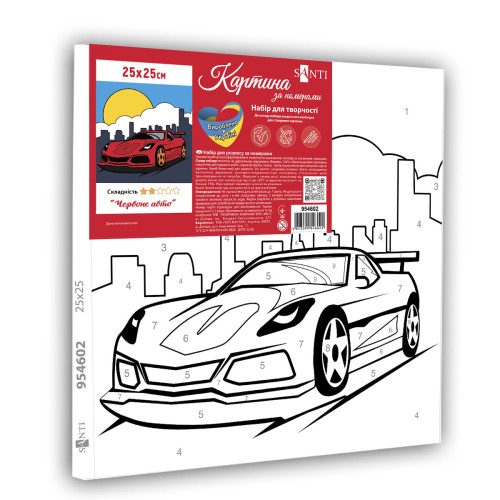 Теги: Картина по номерам с красками 25х25 см Красное авто SANTI