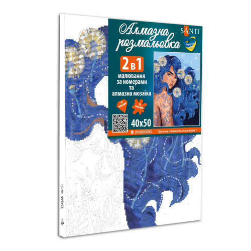 Теги: Картина по номерам с алмазной мозаикой SANTI Девушка с голубыми волосами, 40x50 cм