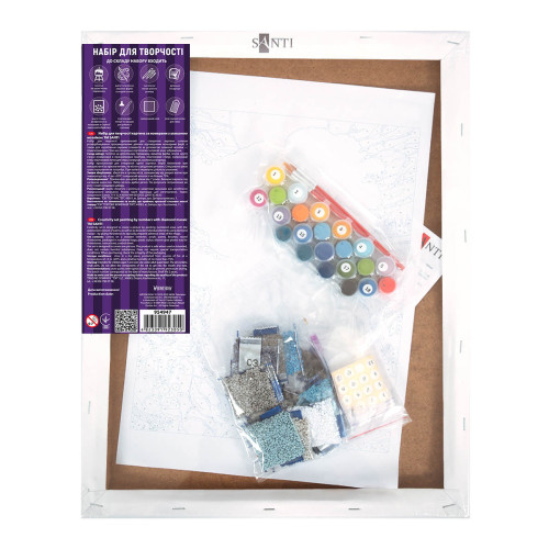 Погрузитесь в атмосферу творчества и волшебного сияния! Картина по номерам с алмазной мозаикой 2 в 1 ТМ SANTI объединяет две самые любимые техники — живопись по номерам и блеск алмазной выкладки. Создайте эффектную композицию, даже если никогда раньше не рисовали!