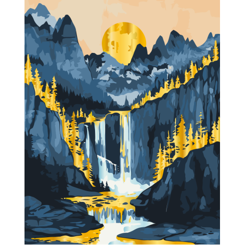 Теги: Набор для росписи Закат в горах, Золотой пейзаж с металлизированными красками 40х50 см, 11076-AC, AC-1749, Картины по номерам с красками металлик
