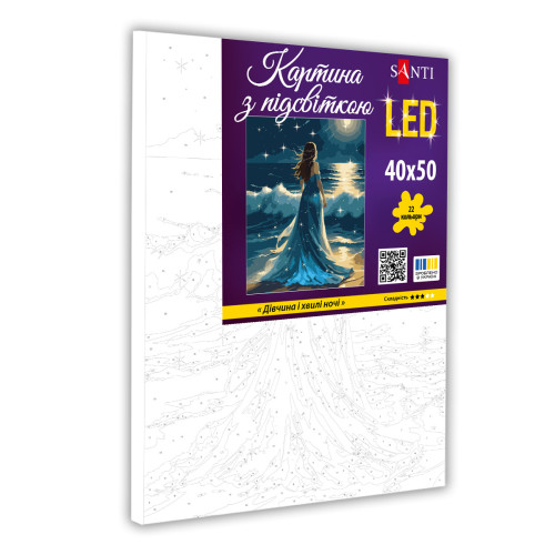 Теги: Картина по номерам с LED подсветкой SANTI Девушка и волны ночи, 40x50см