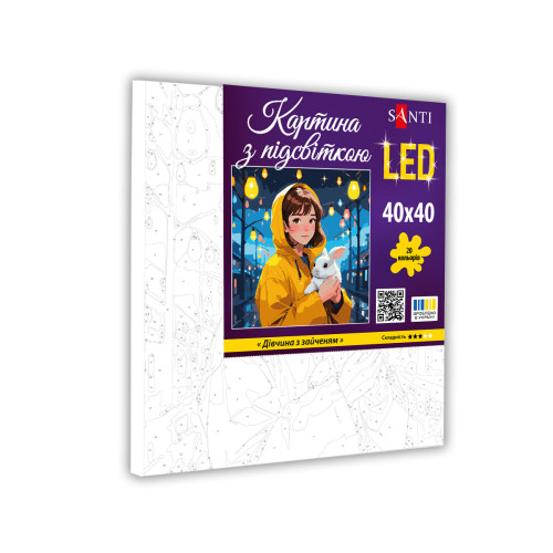 Теги: Картина по номерам с LED подсветкой SANTI Девушка с зайчиком, 40x40см