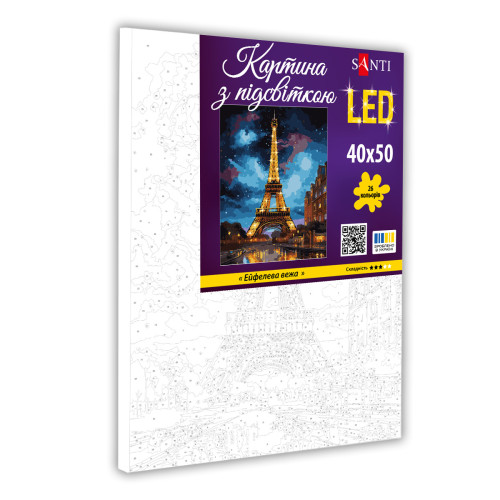 Теги: Картина по номерам с LED подсветкой SANTI Эйфелева башня, 40x50см