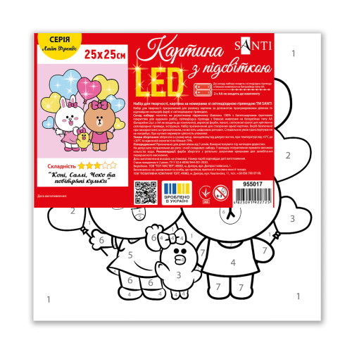 Картина по номерам с LED подсветкой SANTI Лайн Френдс. Кони Салли Чоко и воздушные шарики 25х25 см