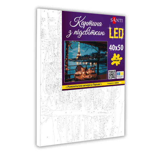 Теги: Картина по номерам с LED подсветкой SANTI Романтический ужин в Париже, 40x50см